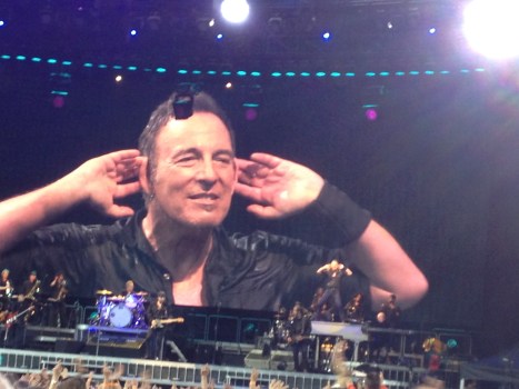 Es folgt No Surrender mit der legendären Textzeile “We learned more from a three minute record than we ever learned in school“, dann gibt es We Take Care of Our Own und Wrecking Ball, bevor Bruce das erste Mal Wünsche einsammelt. Das Rennen macht My Love Will Not Let You Down, gefolgt von Death to My Hometown.