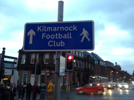 Unser Reiseziel ist das etwa eine Bahnstunde in südwestlicher Richtung gelegene Kilmarnock, wo Celtic am Abend in der SPL beim örtlichen FC antritt. Im Zug von Glasgow Central Station nach „Killie“ lernen wir die „Parkhead Bhoys“ kennen, vier junge Glasgower, die uns spontan mit selbst kreierten (und teilweise sehr schräg schmeckenden) Mixgetränken versorgen und sich im weiteren Verlauf des Abends als sehr aufmerksame Begleiter erweisen. So geleiten sie uns vor dem Spiel in ein Etablissement namens „The Hunting Lodge“, wo sich (ausschließlich) Celtic-Fans die Zeit bis zum Spiel bei Musik und Getränken vertreiben können. Eine schöne Idee – ich versuche, mir das mal bei Auswärtsspielen des FCH vorzustellen, breche aber sofort in ein inneres hysterisches Gelächter aus. Die Stimmung ist jedenfalls großartig und etwa 30 Minuten vor Spielbeginn begeben wir uns dann inmitten einer euphorisierten Menge in Richtung Rugby Park.