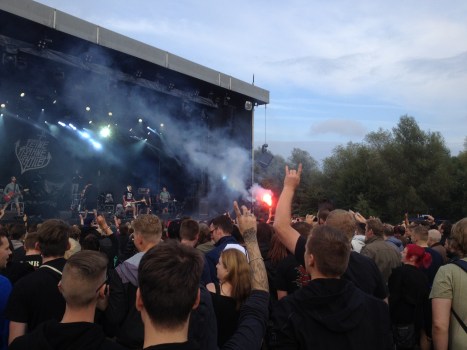 Auch gegen Homophobie und Sexismus bezieht die Band klar Stellung. Es verwundert daher schon, während des Feine-Sahne-Auftrittes (und auch später noch) eine Gummipuppe in die Höhe gehalten zu sehen. Der klaren Ansage an diese Deppen, doch lieber öfter mal zu Hause die Hand zu Hilfe zu nehmen, als sich dermaßen zu entblöden, kann man sich nur anschließen. Leider werden statt dieser Vollhonks Leute aus dem Publikum entfernt, weil sie Fackeln entzündet haben. War den Veranstaltern beziehungsweise der Security nicht bewusst, welche Band und Fans zu Gast sind?