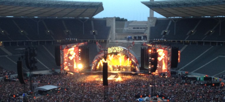 Ein Riesenfan dieser Combo, der jeden Song beim ersten Akkord erkennt und von vorn bis hinten mitsingen kann, war ich nie, dennoch sind einige ihrer Werke bleibende musikalischen Erinnerungen an meine Jugendzeit und natürlich gehören die Männer um Angus Young ganz klar in die Kategorie „Sollte man mal live erlebt haben“. Also habe ich mich bei Bekanntgabe der Tourtermine für 2015 gleich ins Getümmel bei eventim gestürzt. Leider war ich für den Innenraum schon zu spät dran, so dass es nur für einen Sitzplatz in der Ostkurve des Olympiastadions, in fast maximaler Bühnenentfernung reichte.