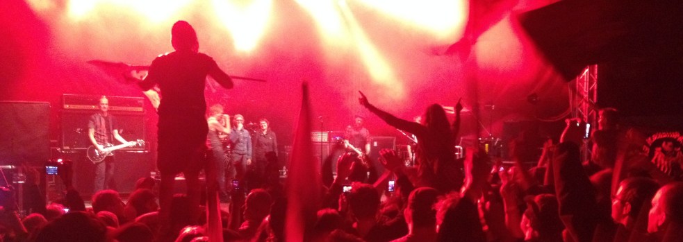 Pünktlich um 22:30 geht es los. Zu einer Klaviervariation vom „Auswärtsspiel“ nehmen Vom, Andi, Kuddel, Breiti und schließlich Campino ihre Plätze auf der Bühne ein und legen los. „Auswärtsspiel“ beschreibt den Abend ziemlich treffend: Eine politisch links positionierte Band spielt direkt vor den Augen und Ohren einer bekennenden Nazigemeinde ihre Lieder, garniert mit klaren Ansagen, die man dort in dieser Lautstärke sicher nicht gern hört. Eine reichliche Stunde lang schwebt so ein riesiger, akustisch ausgestreckter Mittelfinger über der „Dorfgemeinschaft“.