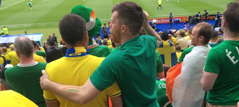 Es ist schwer, nach einem solchen Spiel ohne die gängigen Klischees auszukommen (feierwütige Iren, trinkfeste Nordeuropäer, die angenehmsten Fans, die man sich vorstellen kann und so weiter), vor allem, wenn sich beide auch exakt so präsentierten und darüber hinaus unglaublich offen und freundlich auftraten. Ich kann auf jeden Fall festhalten, dass dieses Spiel sowohl auf dem Platz als auch daneben mit zu den schönsten Erlebnissen gehört, die ich beim Fußball je hatte. Das wird nur schwer zu übertreffen sein. Da trifft es sich gut, dass ich vor dem nächsten EM-Spiel (Russland-Slowakei am Mittwoch) einen Tag „spielfrei“ habe und wieder etwas „runterfahren“ kann.