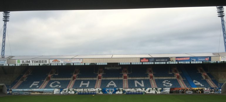 Hansa: „Du, Rostocker Feuerwehr, wir wollen ein paar Fotos auf der leeren Tribüne an die Sitze kleben, haben aber panische Angst vor einer spontanen Selbstentzündung.“