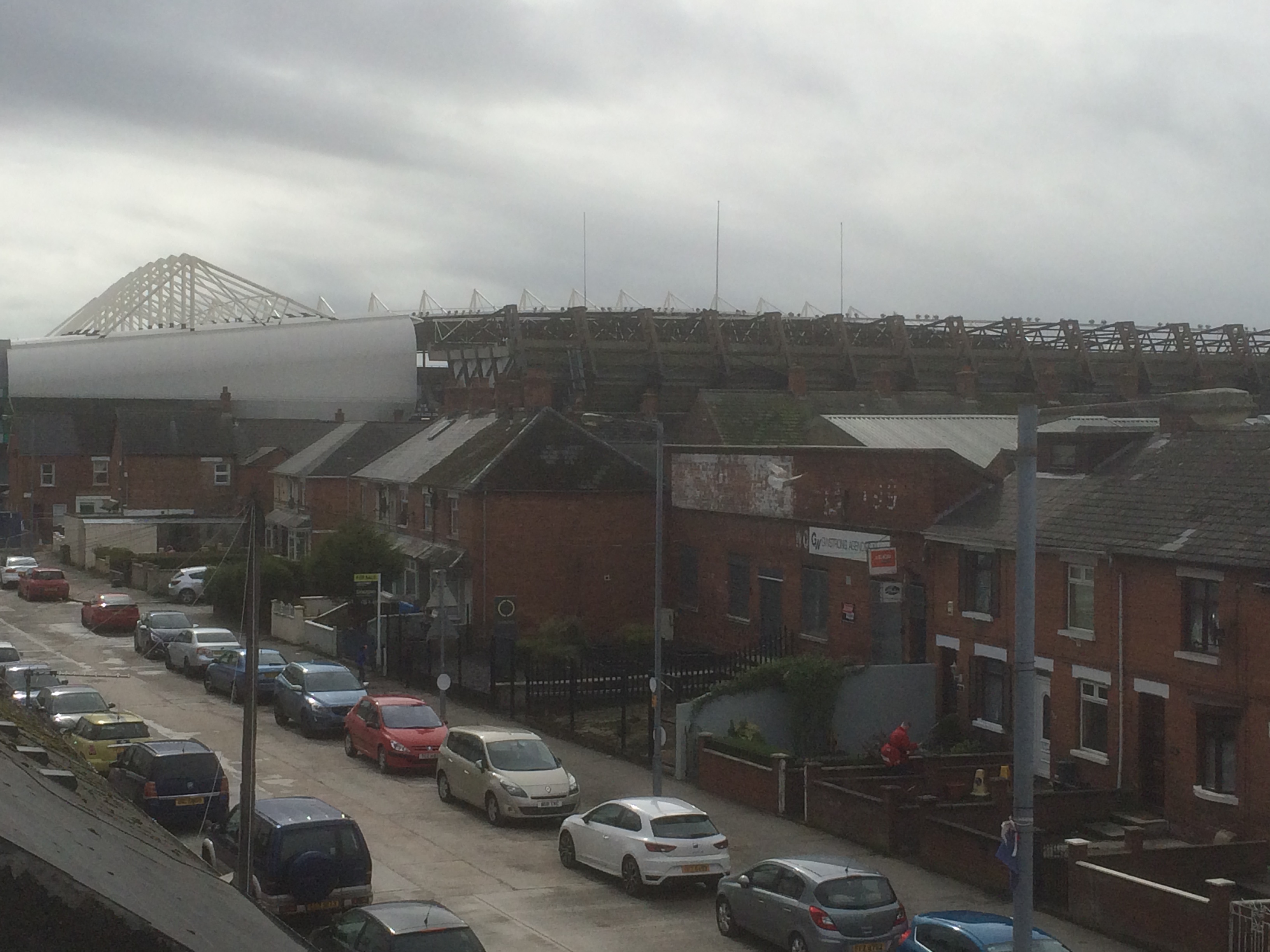 Wir haben noch Zeit für ein Vorspiel-Bierchen, allerdings ist weit und breit kein Pub zu sehen. Vor einem Fish‘n‘Chips-Laden stärkt sich gerade ein Familie (Mutter, Vater, zwei Jungs in Trainingsanzügen), wir fragen einfach nach. Die Frau kennt sich auch nicht so im Viertel aus und fragt daher jemanden, der sich mit Fußball und Bier auskennen MUSS, ihren älteren, etwa zehn- bis elfjährigen Sohn. Der will entweder nicht verraten, wo er sich mit seinen Kumpels zum Trinken trifft, oder weiß es einfach auch nicht. Immerhin gibt er uns den Tipp, dass im Stadion eine Bar sein soll, die zu Spielen geöffnet hat. Ein prächtiges Kind.