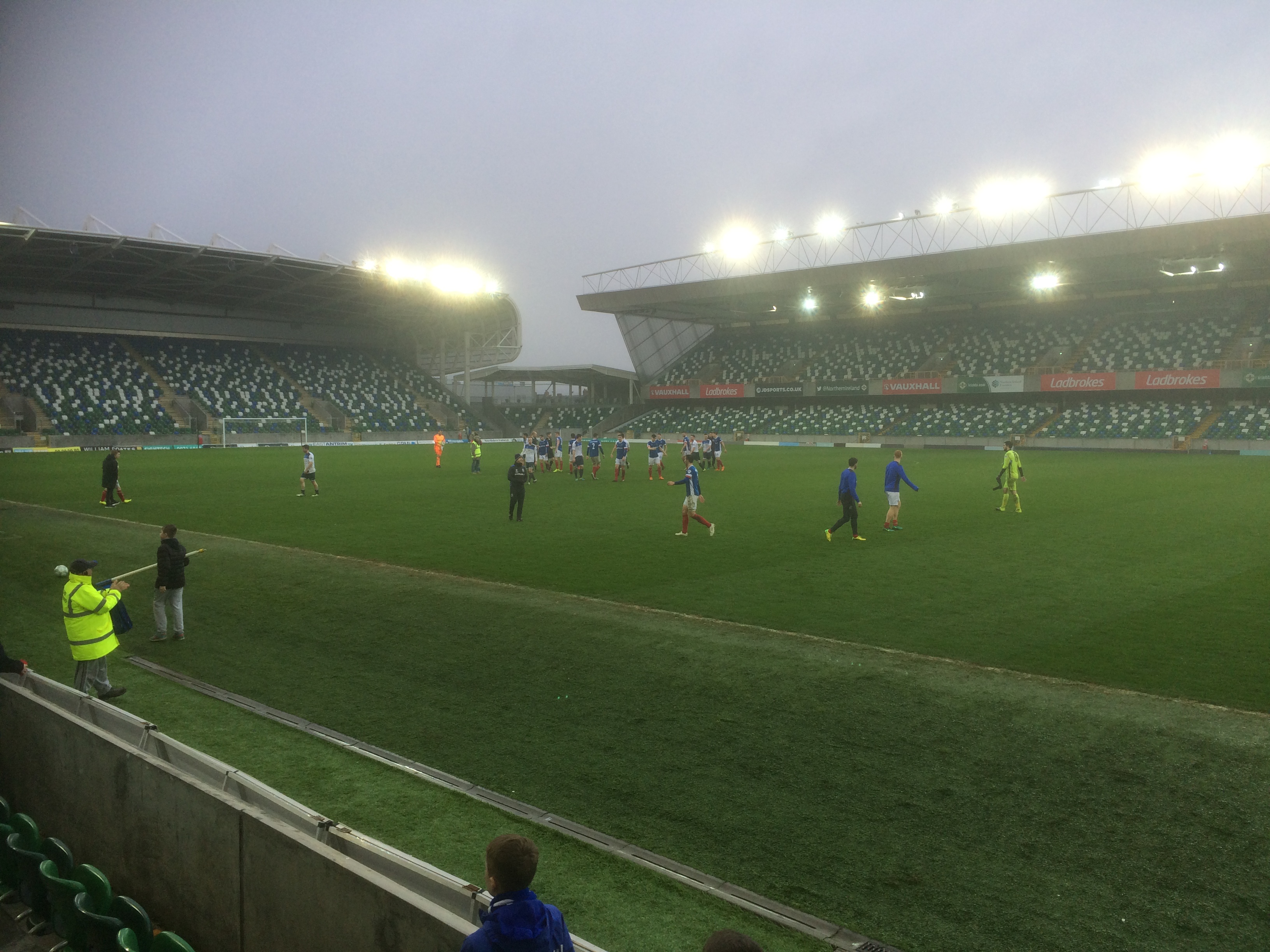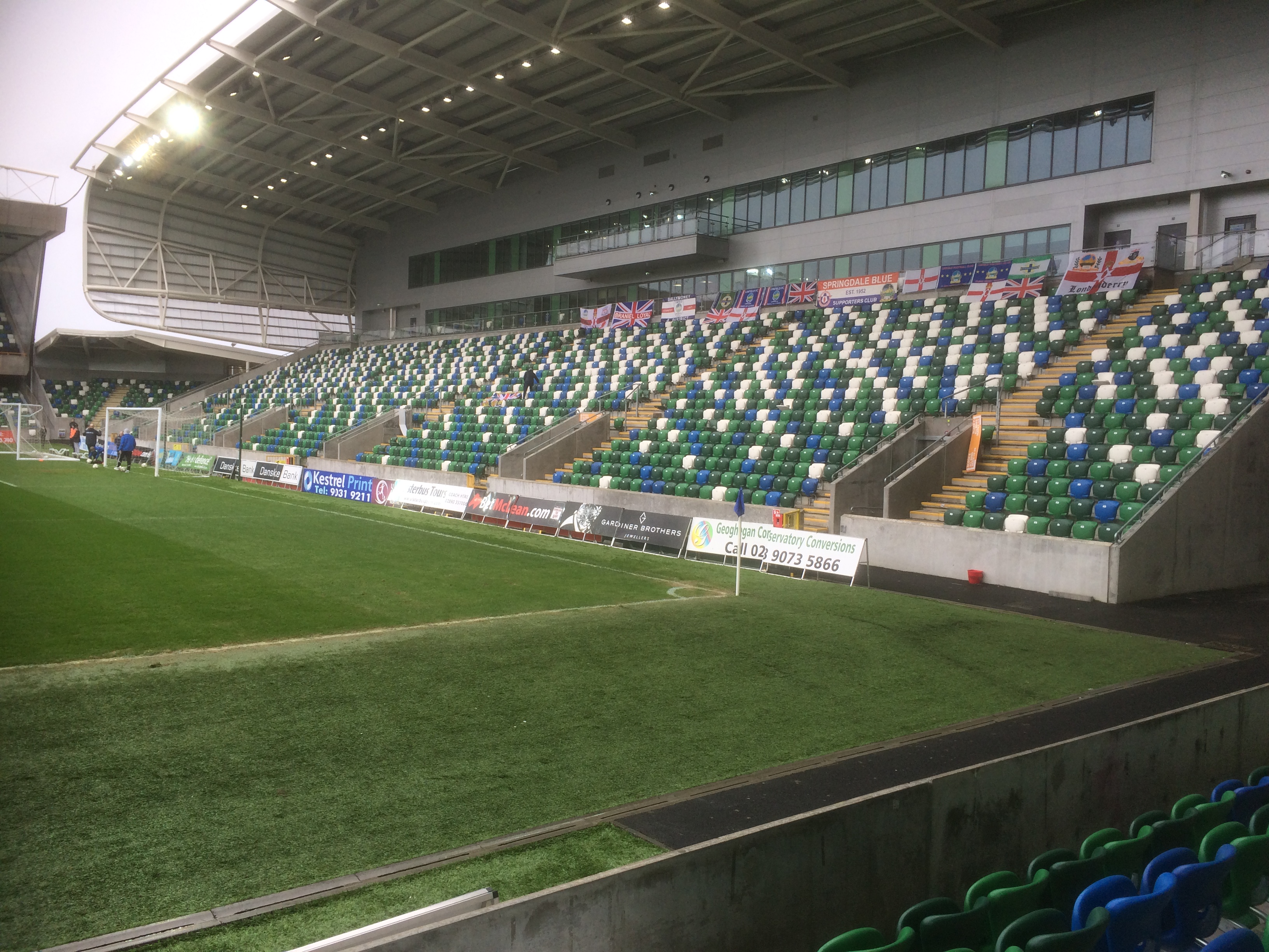 Man sieht dem National Stadium der I.F.A. seine mehr als hundertjährige Geschichte leider überhaupt nicht an, nach mehreren Umbauten und Modernisierungen steht da ein steriler, trost- und seelenloser Kasten, der darüber hinaus auch optisch keinerlei Emotionen weckt, was durch drei komplett leere Tribünen noch verstärkt wird. Vielleicht (hoffentlich) ist das ja bei ausverkauften Länderspielen und mit Flutlicht anders, wenn Will Grigg on fire ist.