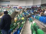 Den Eingang zu finden, ist gar nicht so einfach. Wir sehen eine Stadiontribüne direkt hinter der Hausreihe, vor der wir gerade stehen. Nach rechts führt die Straße vom Stadion weg auf einen Nebenplatz, am anderen Ende steht ein unüberwindlich scheinender Bauzaun. Wir gehen trotzdem mal hin, unser tapferer Lukas als Jüngster wird vorgeschickt, um zu schauen, ob man da durchgehen kann. Er kommt kopfschüttelnd zurück: „Da sind auch nur verschlossene Tore.“ Wir irren noch ein Weilchen in der Siedlung herum, bis uns ein Mann mit Kind und Fanschal bedeutet: „Follow me!“ Jetzt passieren wir den Bauzaun, gehen auf das tatsächlich verschlossene Tor zu, links davon führt aber ein ziemlich breiter Weg zum Eingang. Lukas wird uns später auch unter Folter nicht verraten, was er bei seiner Erkundung wirklich gesehen hat.