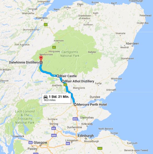 Von der Blair Athol Distillery geht es dann gemeinsam weiter nach Dalwhinnie, der höchstgelegenen aktiven Brennerei Schottlands. Unterwegs ermöglicht uns modernste Kommunikationstechnik, das Spiel Hansa gegen den KSC zu verfolgen. Nach 30 Minuten haben wir genug gesehen. Bemerkenswert finde ich die erstaunliche Netzqualität, immerhin sind wir in den Highlands. Versucht das mal auf einer deutschen Autobahn – Neuland unterm Fluch, sage ich da nur.