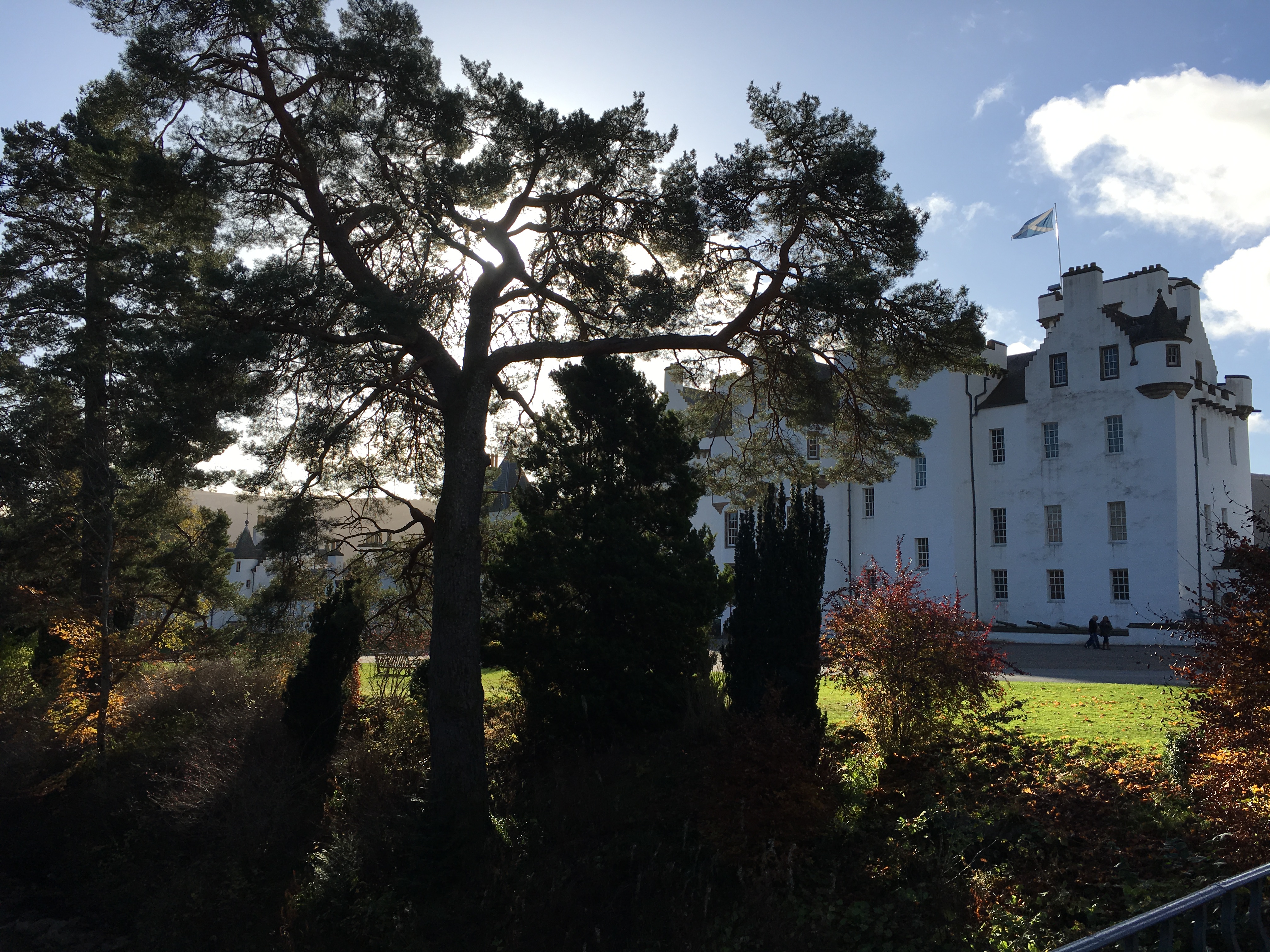 Der Rest der Gruppe sammelt unterdessen Kulturpunkte beim nahe gelegenen Blair Castle, einer beeindruckenden Burganlage aus dem 13. Jahrhundert mit weitläufigen Gartenanlagen. Der Eintritt von 11 Pfund scheint uns bei gerade mal einer Stunde Zeit, die wir haben, nicht ganz angemessen, so dass wir ein wenig im Park lustwandeln. Wer auf frische Luft und Entspannung steht, ist dort genau richtig, jede Menge Grün und zwischendrin plätschert ein kleiner Bach munter vor sich hin. Dass später nicht alle Reisenden mit trockenen Füßen zum Bus zurückkehren, obwohl der Bach definitiv kein Hochwasser führt, wird ein auf ewig ungelöstes Mysterium dieser Reise bleiben.