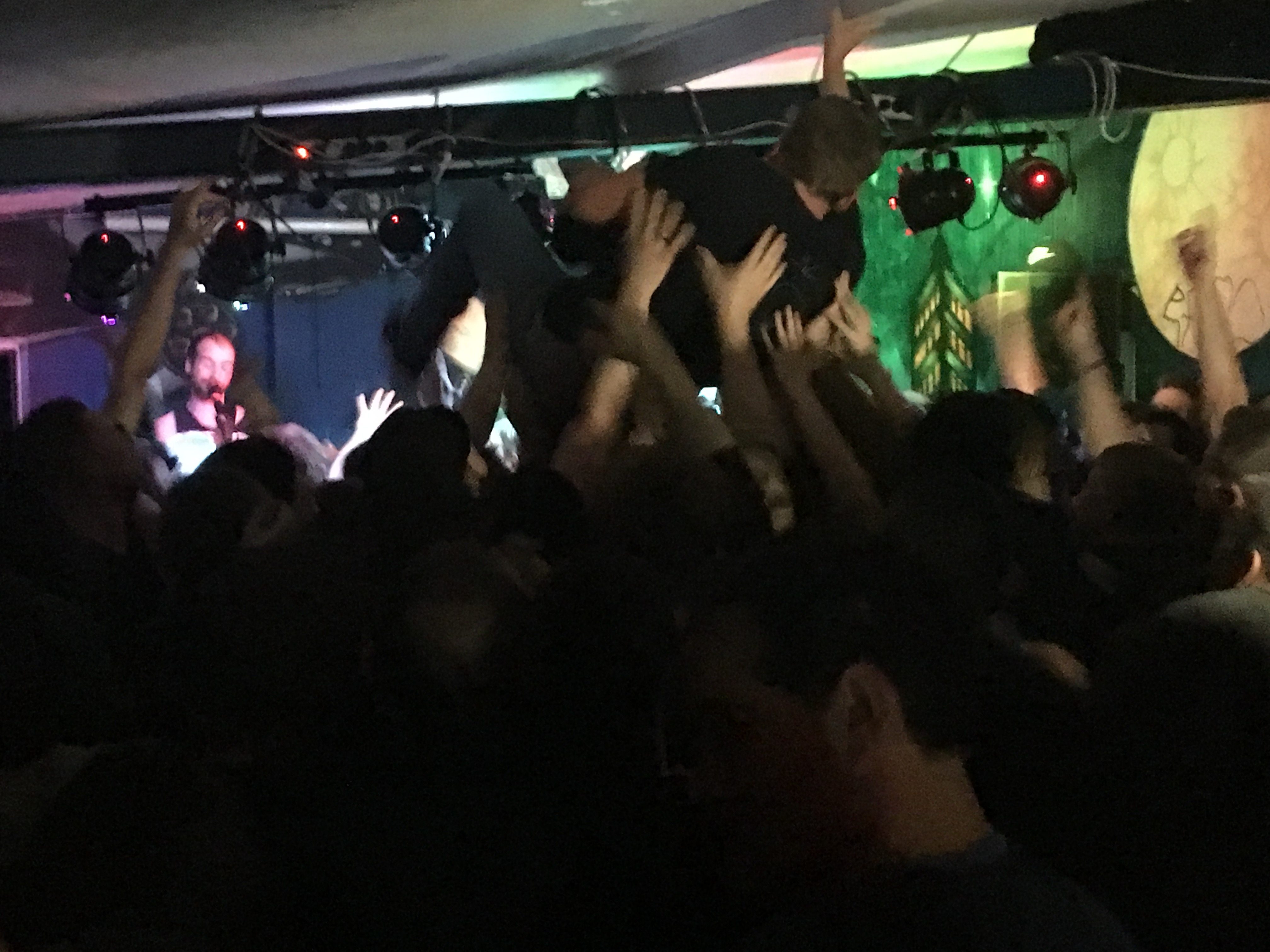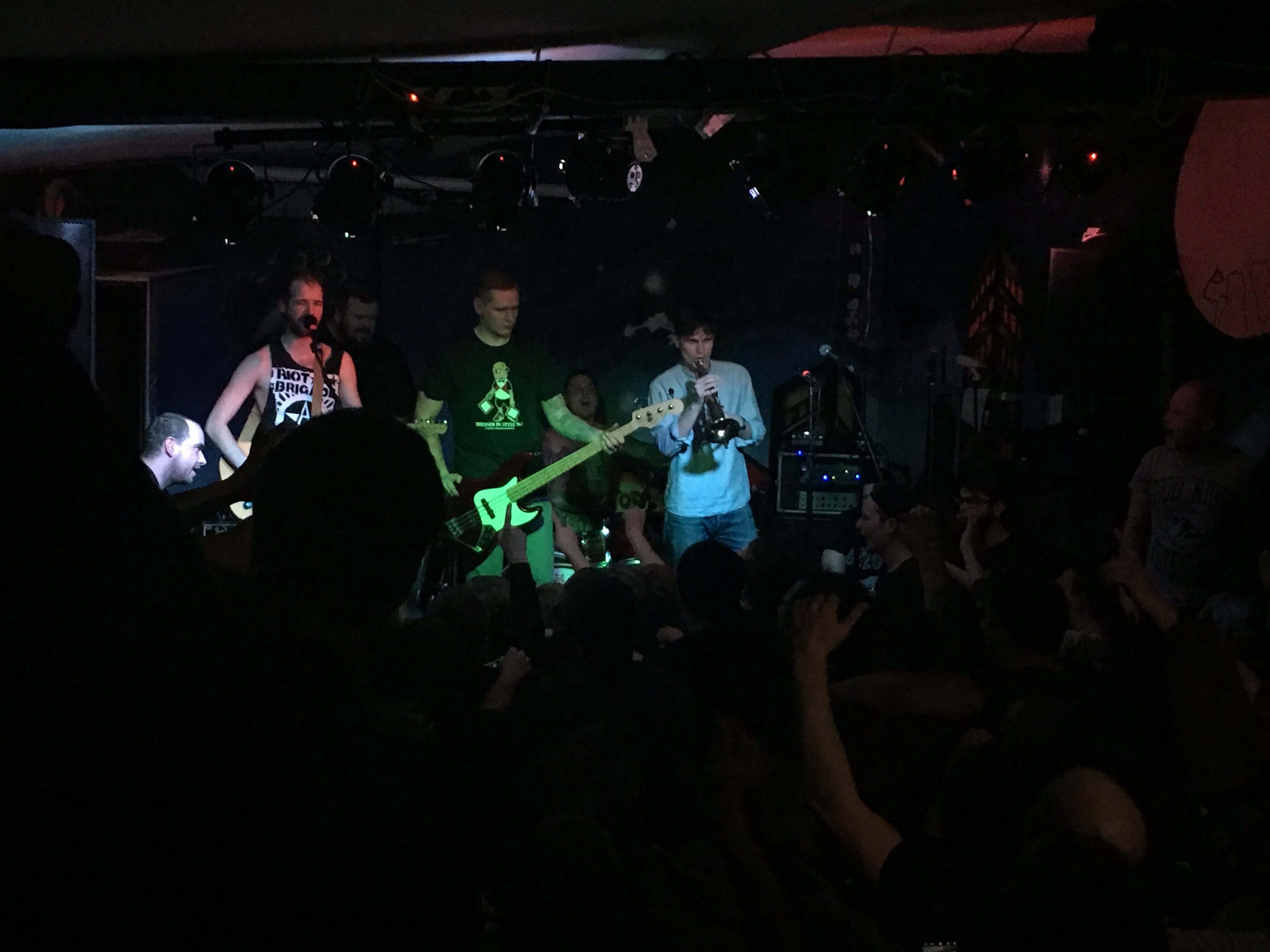Und der Plan geht tatsächlich auf. Die Band spielt zweimal das gleiche Set vor jeweils ungefähr 150 bis 180 komplett aus dem Häuschen befindlichen Fans. Es ist eine unglaubliche Atmosphäre, Durchdrehen ist angesagt. Dabei herrscht angesichts der Enge und zum Ende hin doch recht unangenehmen Atemluft eine ausgesprochen positive Ausgelassenheit mit gegenseitiger Rücksicht und Unterstützung. Und so geduldig, wie der zweite Durchgang in der Kälte ausharrt, so zügig leert sich der Raum nach dem ersten Set – komplett im Arsch, aber glücklich.