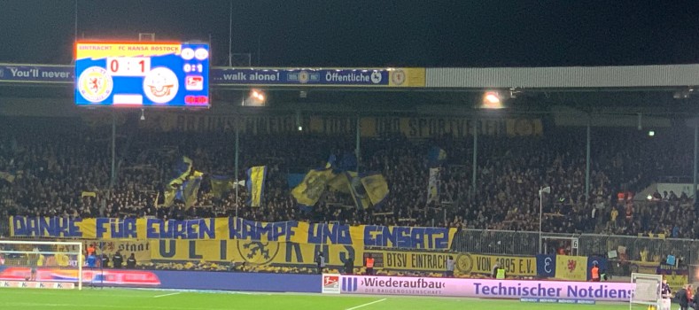 Mit der Führung im Rücken spielen wir die 90 Minuten relativ souverän zu Ende. Beim Lesen verschiedener Online-Kommentare wird deutlich, dass dem Braunschweiger Publikum die Darbietung unserer Mannschaft wohl nicht so gefallen hat, mir springt das garstige Wort „Trümmertruppe“ ins Auge. Gern geschehen, für euch hat es gereicht.