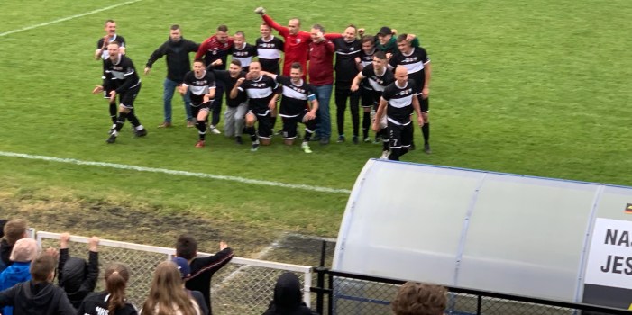 Der „Underdog“ liefert dem Favoriten ein beherztes Spiel mit großem Einsatz, dreht mit Kampfgeist nach anfänglichem 0:1-Rückstand das Spiel und gewinnt dank eines blitzsauber herausgespielten Kontertores kurz vor dem Ende mit 2:1. Nach dem umjubelten Schlusspfiff feiern Spieler und Fans gemeinsam mit einer Art „Uffta“, wobei ein Spieler in die Vorsängerrolle schlüpft. Ein Megaphon braucht er dafür nicht.