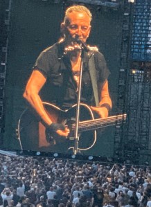Gute Frage, schließlich sind wir immer noch in Deutschland. Deshalb also meine ganz subjektive Sicht: Kritik gibt es ja immer, und oft zu Recht, bei Stadionkonzerten am Sound. Da bildete auch dieses keine Ausnahme, wie soll das auch gehen für über 50.000 Menschen? Über weite Strecken fand ich es durchaus annehmbar, da waren Bruces kurze Ansagen, sein Gesang gut zu verstehen (sehr gut übrigens die Untertitel an geeigneten Stellen), wichtige Instrumentalparts von Jake, Soozie und Nils (BECAUSE THE NIGHT!!!) ebenfalls.