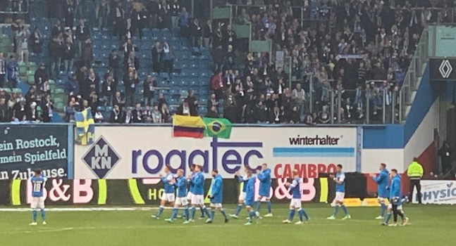 Special Effects führten diesmal nur die Berliner vor, einige Fackeln, aber leider auch ein paar Böller, während man auf Hansaseite diesbezüglich die Füße stillhielt. Einer Polizeimeldung zufolge betätigten sich ein paar Leute im Gästeblock handwerklich, was dazu führte, dass ein uniformierter Trupp den weiteren Spielverlauf auf der Tribüne verfolgte. Den Weg zur Pressemitteilung finden Interessierte sicher selbst. Merke: Manche*r hat noch einen Koffer in Berlin, aber Werkzeug gehört ins Handgepäck.