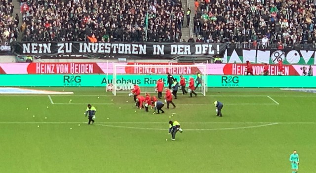 Egal, wie man zu den aktuellen Fanprotesten steht, eher noch zur gewählten Protestform, Anerkennung für die logistische Vorarbeit ist schon geboten. Und Mitgefühl für die wackeren Ordner, die eines ums andere Mal unverdrossen herbeieilten, um die corpi delicti einzusammeln, eine wahre Sisyphos-Aufgabe. Nach einer vergleichsweise kurzen Spielunterbrechung schaffte das Zieler dann fast allein, die Hansa-Offensive war aber auch rücksichtsvoll genug, ihm die Zeit dafür zu lassen. Dazu kommen wir noch.