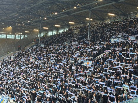 *Die Reisenden vor Ort bekamen übrigens auch nichts, O-Ton Alm-Öhi: „Hansa Roschdock, Hochsicherheitsspiel, wir dürfen erst 16:30 Uhr öffnen.“ Aber Karma’s a bitch, und so folgte die Antwort auf dem Platz: