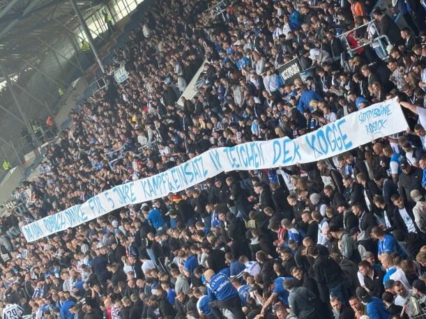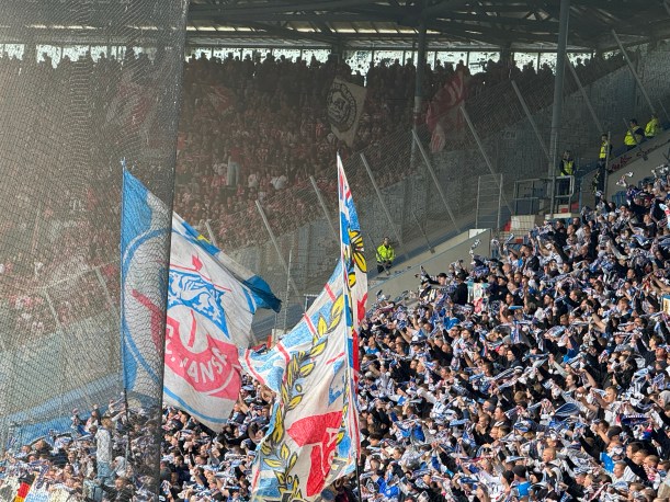Das Ostseestadion ist wieder ausverkauft, 27.500 Fans sind dabei, mit großen Erwartungen in beiden Lagern. Der bestens gefüllte Gästeblock legt, insbesondere lautstärketechnisch, einen sehr starken, geschlossenen Auftritt hin, für mich persönlich den besten in rot-weiß, den ich in 25 Jahren hier erlebt habe. Zusammen mit der sportlichen Darbietung der Mannschaft liefert der FC Energie aus meiner Sicht in der Saison 2024/25 das beste gegnerische „Gesamtpaket“. Respekt für eine rundum überzeugende Darbietung.