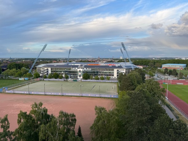 Größte Herausforderung im Vorfeld ist das Finden einer Reisemöglichkeit. Eine Geburtstagsfeier in Rostock am Vorabend des Spiels macht es nicht einfacher, ich muss ja nach dem Spiel auch wieder nach Schwerin. Aber erfreulicherweise ergibt sich genau dort, bei der Party des Jahres (Grüße an das Geburtstagskind!) mit der schönsten denkbaren Aussicht eine Mitfahrgelegenheit, so dass ich rundum sorglos (Danke, Hanne!), einschließlich des köstlichen Mittagsmahles im Warener Ratskeller, zum Stadion gelange und am späten Nachmittag rechtzeitig in Schwaan den menschenleeren Bahnhof (so geht „Entschleunigung“!) in Erwartung des RE1 betrete, der mich sicher nach Hause bringen wird.