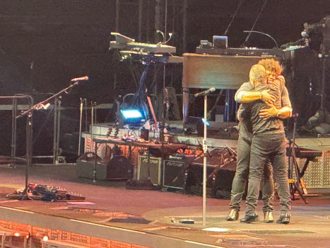 Jake hat nun vorübergehend eine neue Position in der Bandvorstellung „erobert“, nämlich die Spitze des „last but not least“, weiter in den großen Spuren des Big Man, ein berührender Höhepunkt des emotionalen Abends. Und obwohl das heute „eigentlich“ mein persönlicher Abschied von großen Stadionshows sein soll, wünsche ich mir nun gerade in dem Moment, es möge doch nicht der Abschluss sein.