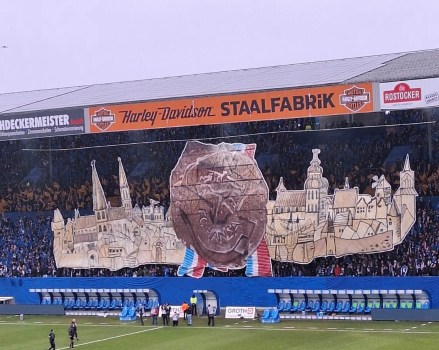 Der Spieltag setzt den Feierlichkeiten zum Sechzigsten nach dem gigantischen Geburtstagswochenende 27./28. Dezember in der Stadthalle, im Ratskeller und am Alten Markt nun im Ostseestadion optisch, atmosphärisch und emotional die Krone auf. Vor dem Anpfiff erstrahlen nach dem an Intensität und Hingabe kaum noch zu übertreffenden Hansa Forever alle Tribünen in historischem 1965er Empor-Blau/Gelb*, während mit „Unsere Heimat, unsere Liebe, unsere Farben Blau-Weiß-Rot“ akustisch der Brückenschlag über 60 Jahre in die Gegenwart zum F.C. Hansa im 21. Jahrhundert vollzogen wird. Alle im Stadion Anwesenden sind aktiver Teil dieses überwältigenden Panoramas.