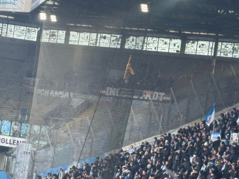 Mit dem Strom gibt es bis in die erste Halbzeit hinein kleine Störungen, was sonst irgendwie kaum auffällt. So bleibt nach dem Verlesen der Gästeaufstellung auf einmal die Stadionmoderation „stumm“. Komisch, niemand scheint etwas zu vermissen, bis zum entscheidenden Moment: Als der Zeitpunkt für unsere Hymne gekommen ist, können wir uns mal von den Vorzügen des organisierten Supports überzeugen: Der altbekannte Aufruf von der Südtribüne an das Ostseestadion erklingt, schnell stehen alle Tribünen, die Schals werden erhoben, dann donnert zweimal der Refrain unseres „Hansa forever“ durch das Stadion, was in dieser nicht „animierten“ Form durchaus einen besonderen Charme versprüht. Atmosphäre saugen – mal anders. Und vor allem müssen die Mannschaften im Spielertunnel nicht auf ihre gewohnte Begrüßung vor dem Auflaufen verzichten.